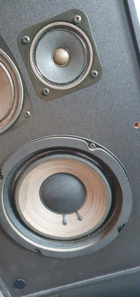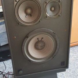 Einstiegslautsprecher von 1981. 3-Wege mit Konuslautsprechern. Frontmontage und abnehmbarer Bespannung.