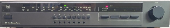 Der Dual CT 1120 war der passende Tuner. die Ausstattung war extrem reduziert, z.b. kein AFC.  Dafür hatte er im Gegensatz zum CT 1160 einen Ein/Aus-Schalter.