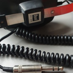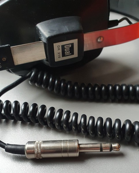 Wendelförmig gerolltes Anschlusskabel, dadurch längenvariabel und gebrauchssicher. Kabel 1/4 inch-Klinken-Stecker, 2,5 m lang