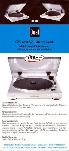 Dieses Faltblatt wurde von Sintron herausgegeben. Die Aufmachung ist sehr schlicht. Das auf der Frontseite die Silhouette des CS 410 genommen wurde ist verwunderlich.