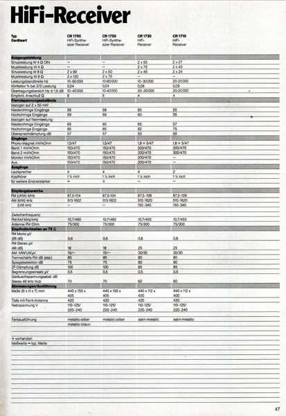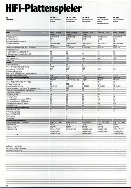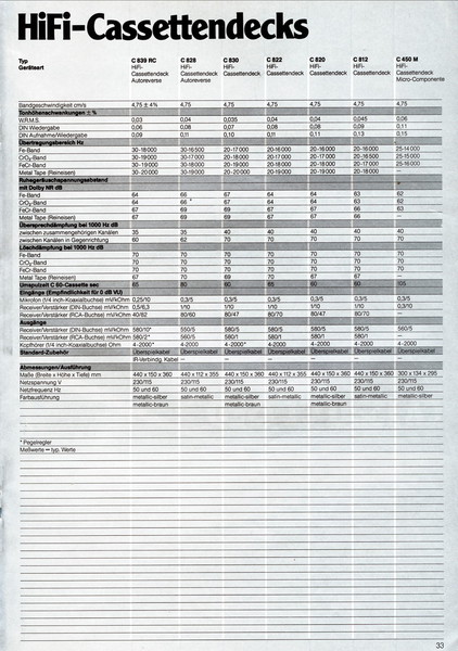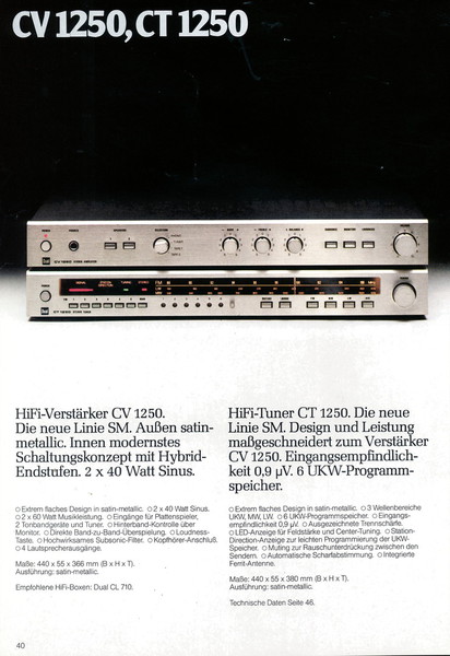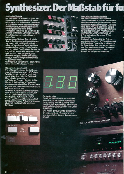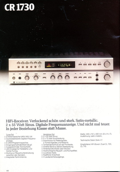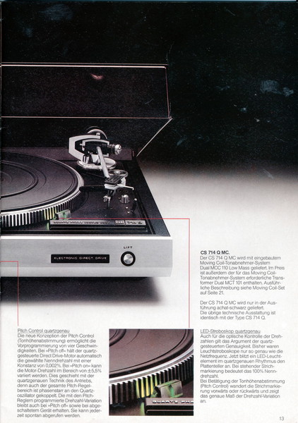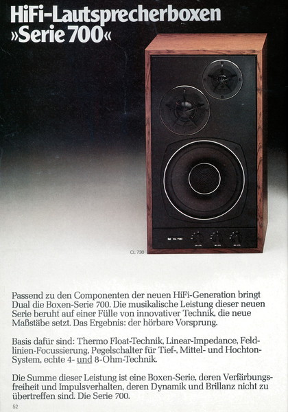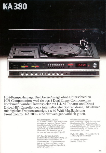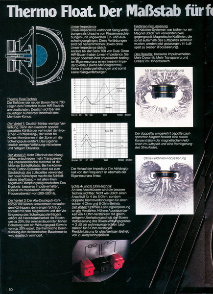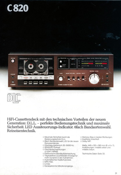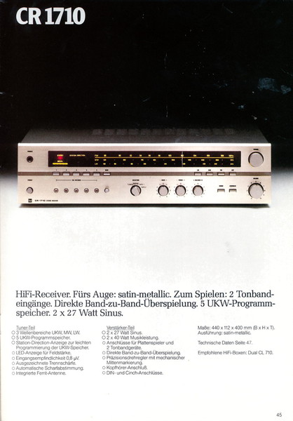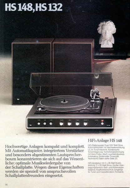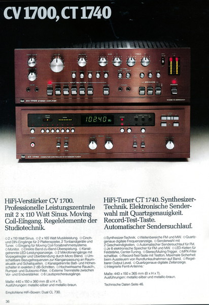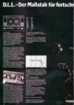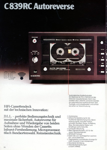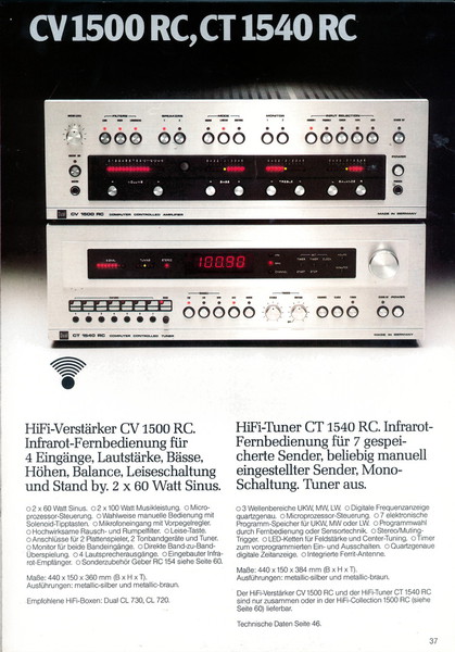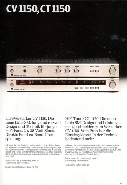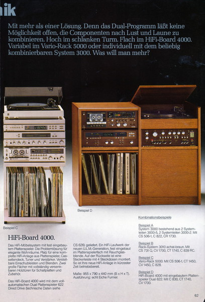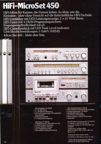"1981 setzt der U.L.M.-tonarm neue Maßstäbe für Hifi Plattenspieler. Die D.L.L.-Technik neue Maßstäbe für Cassettendecks. Die Synthesizer-Technik für Receiver und Tuner. Die Thermo-Float-Technik für Hifi-Boxen und Remote Control für den komplett fernsteuerbaren Turm."