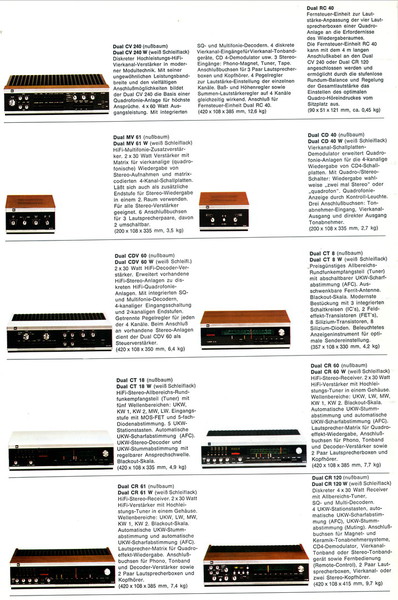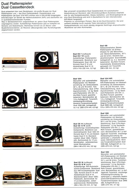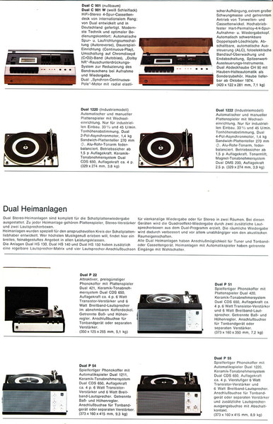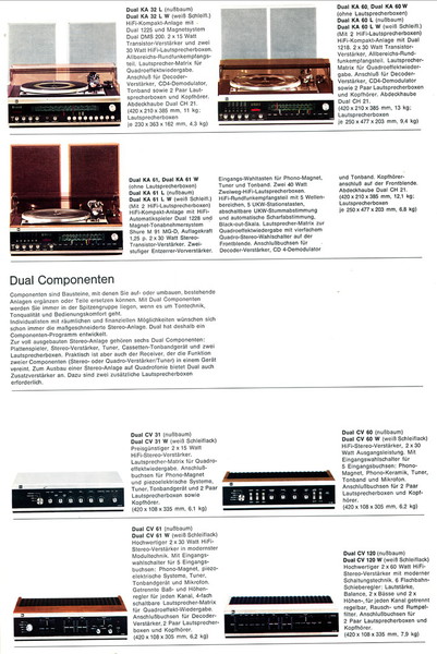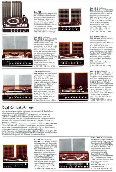 Leider ist der Katalog nur von mäßiger Qualität, so daß ich hier nur einige Bilder zeigen kann. Neben den bekannten HS-Geräten nehmen die Kompaktanlagen KA einen breiten Raum ein. Der 701 als direktangetriebener Spieler stellt das Topmodell dar. Hinzu kommt der Trend zu Quadro-Wiedergabe. Das Programm 1974/75 liegt hier in einem mehrseitigem Faltblatt vor. Die Bilder darin sind sehr klein.