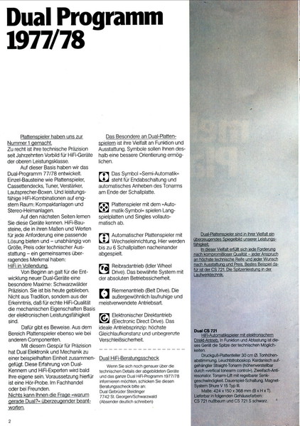 So startet der Prospekt 1977/1978. Dieser zeigt die komplette Gerätepalette in einer kompakten Übersicht mit relativ kleinen Bildern.