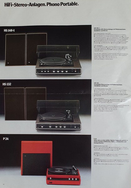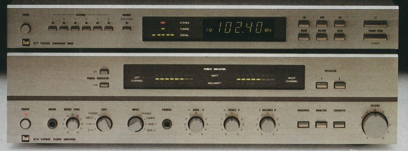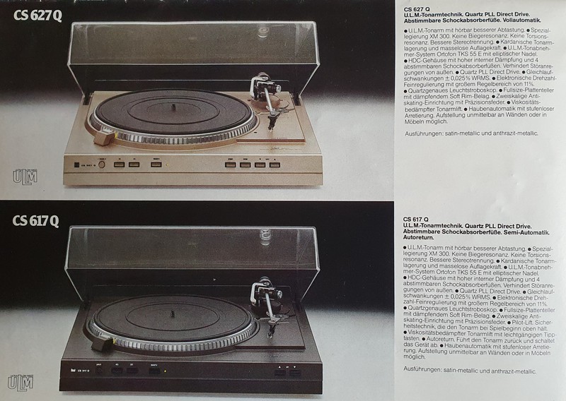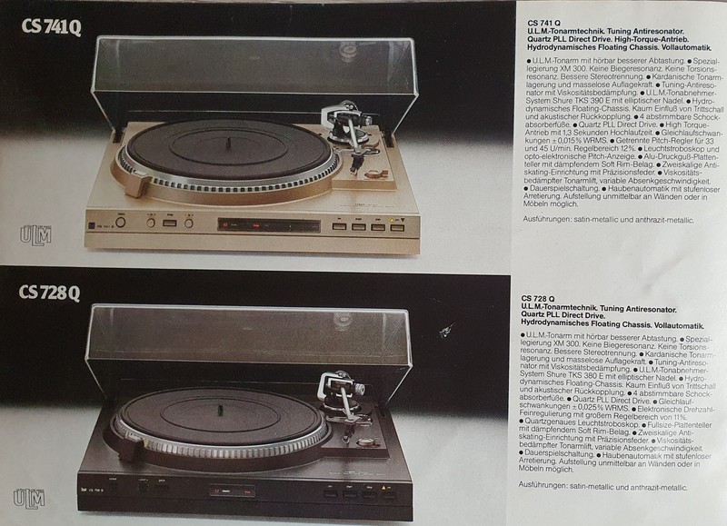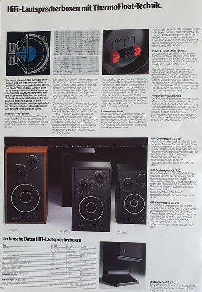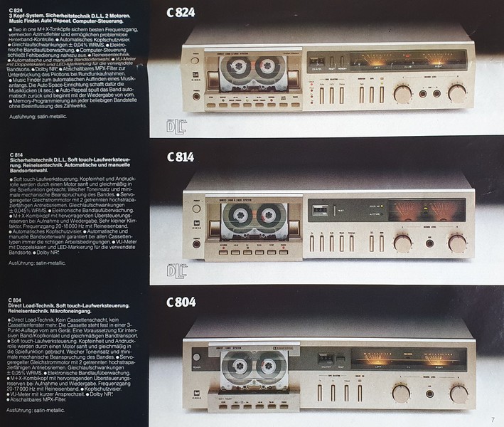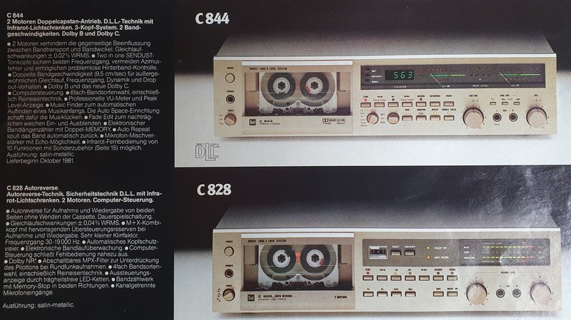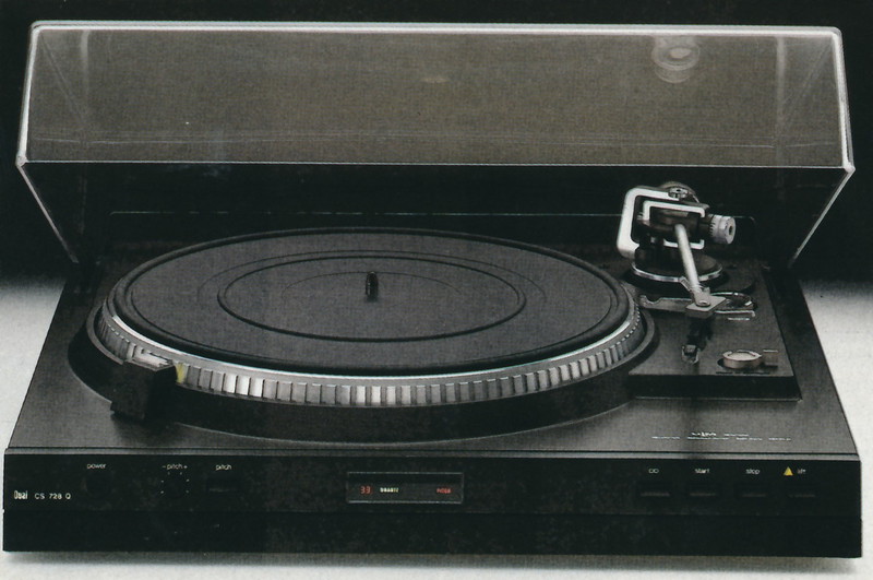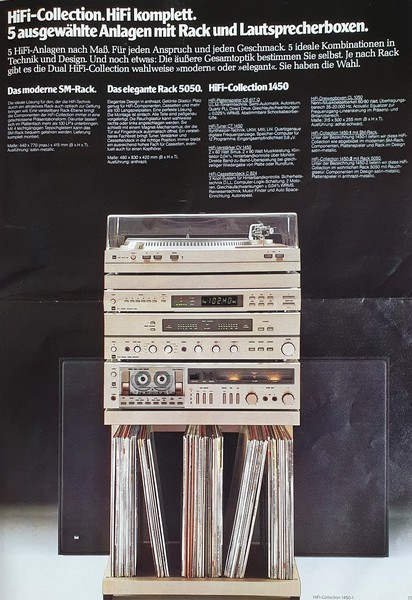 Ende 1981 kam eine komplett neue Gerätegeneration auf den Markt. Die neuen Plattenspieler der CS 7xx und CS 6xx Reihe basierten nicht mehr auf der bisherigen Platine. Die Gehäuse wurden vorwiegend aus Kunststoff rationell gefertigt, so daß eine große Modellvielfalt im gleiche Look entstand. Nur noch der CS 505-1 und der CS 1254 basierten auf der alten Technik. der 1254 war auch der letzte Plattenwechsler. Diese Tradition wurde somit beendet. Bei den Rekordern erblickte neben vielen anderen Geräten das C 844 das Licht der Welt. Es hatte damals neben Dolby C auch die Möglichkeit mit 9,5 cm/s aufzunehmen. Die Klangergebnisse waren phänomenal. Verstärker und Tuner wurden im Slim-Line Design entworfen. Auch merkte man bereits erste Anzeichen, dass die Gerätevielfalt und das äußere Erscheinungsbild dem Rotstift Tribut zahlen mussten. Weiterhin waren zwei Heimanlagen im Angebot, die sich durchaus sehen lassen konnten. Das Dual MCC 110 inkl. dem MCT 101 ermöglichte den einsatz eines hochwertigen MC-Abtasters. Die nachfolgenden Bilder zeigen die Geräte und sind aus dem Dual Programm 1981/82 entnommen. Neben den einzelnen Geräten sind auch die Katalogseiten zu sehen.