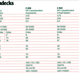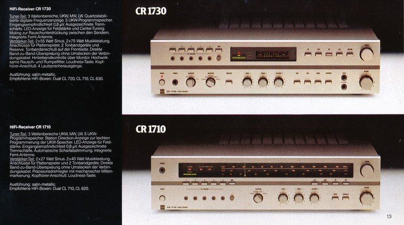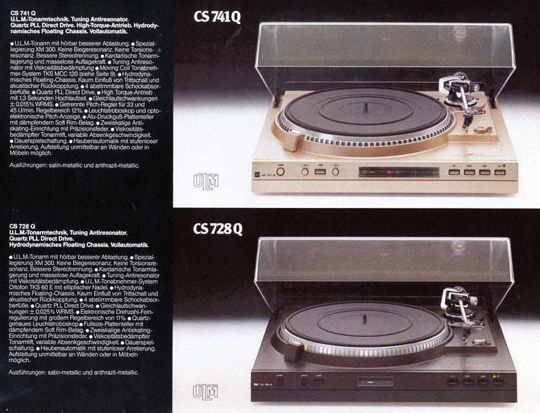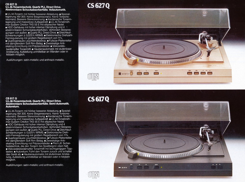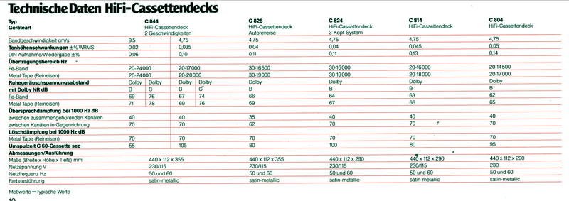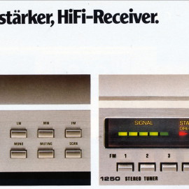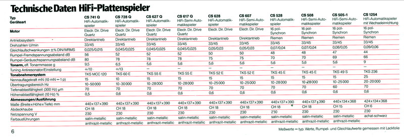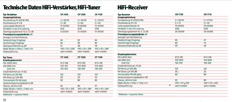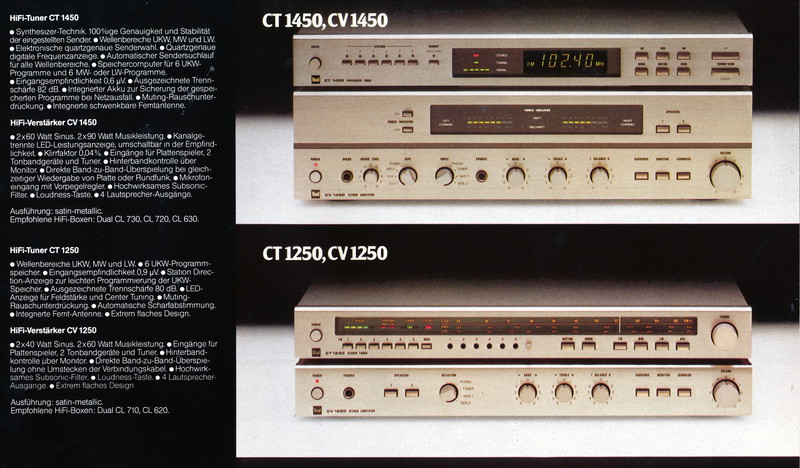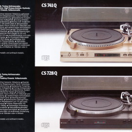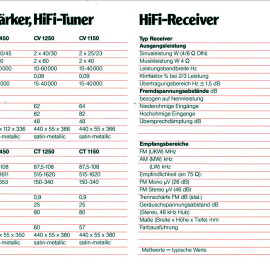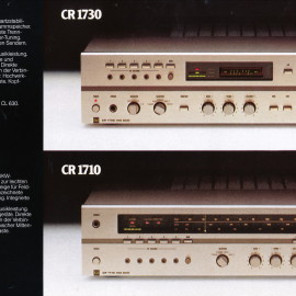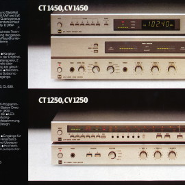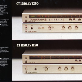 Dieser Katalog ist wieder im A3 Format. Die Geräte der CV und CT Serie sind die letzten mit Voll-Metall Front. Der CV 1450 wurde noch in Deutschland gebaut. Der CS741 Q war der Spitzenspieler und in Verbindung mit dem MCC 120 auch klanglich ganz oben. Die Boxenserie 700 mit Thermofloat Technik wurde ausführlich dargestellt. Mit dem Hinweis auf die kommende PCM Technik (CD-Spieler).