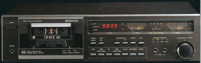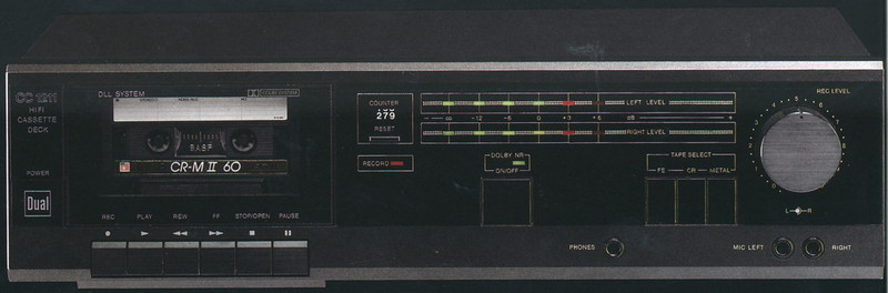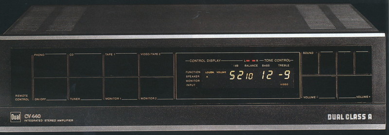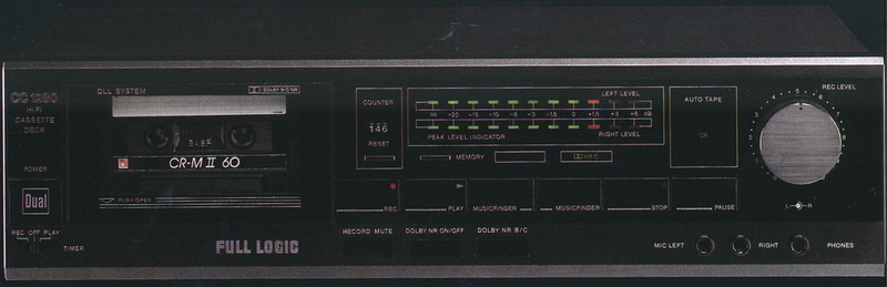Im Jahr 1986 gab es wieder einmal umfangreiche Veränderungen im Geräteprogramm. Neben dem neue Logo "New Tech" besann man sich in St. Georgen wieder auf die Wurzeln. Der CS 5000 wurde präsentiert. Ein Plattenspieler wie aus früheren Zeiten. Holzzarge, komplett neuer Tonarm mit OPS und VTA ließ an die Zeiten eines CS 721 errinnern. Bei den Spielern blieben die CS 6xx und CS 5xx komplett im Programm. Hinzu kamen allerdings auch einige weniger wertige Geräte wie der CS 545. Im Verstärkerbau trumpfte Dual mit dem in doppel-mono aufgebautem Dual CV 440 auf. Die CV 1460 und CV 1260 bleiben im Programm und wurden duch CV 1280 und CV 1220 im neuen Look ergänzt. Bei den Tapes blieb das C 846 als Spitzendekc erhalten. Neben dem C 826 gesellten sich neue Modelle wie der CC 1280. Auch hier ging der Trend zu noch weiteren einfachen Geräten. Mit dem CD 40 präsentierte Dual den ersten CD Spieler "Made in Germany". Bei den Lautsprechern kamen die CL X15 und X10 als Neuentwicklung hinzu. Die restlichen Lautsprecher basierten im wesentlichen auf den Vorgängersystemen mit neuen Gehäusen. Mit dem Einstiegs-Hifi-Videorekorder VR 93 wurde dieser Bereich neben dem VR 97 ergänzt.