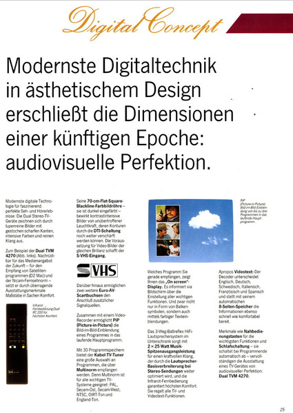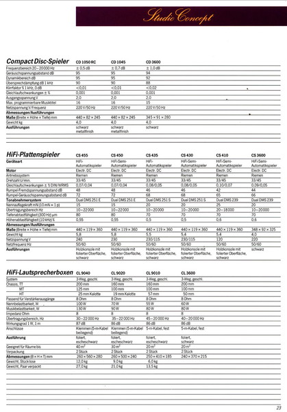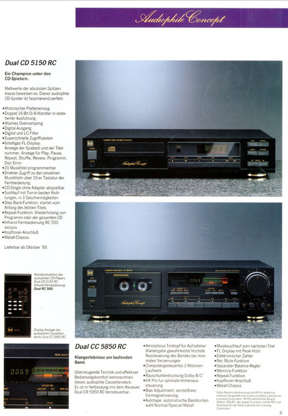 In diesem Katalog hatte der CD 5150 RC Premiere. Dieser CD Spieler war einer der Besten, die Dual im Programm hatte. Der Player entstand in Kooporation mit Rotel. Er hatte als Laufwerk das