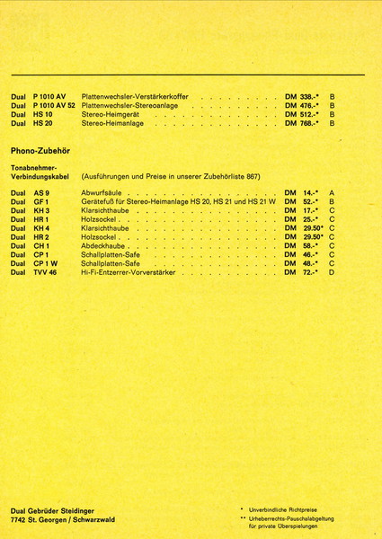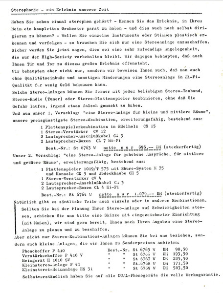 Preisliste und eine Beschreibung zur Bildung von Kombinationen war Bestandteil.