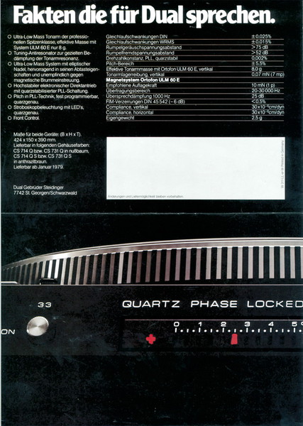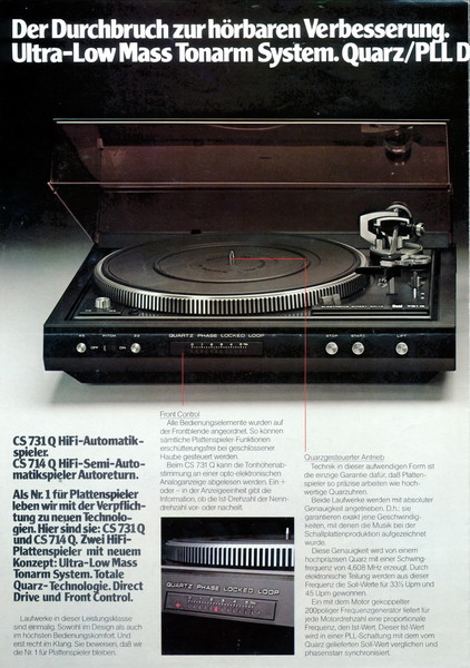 Hifi-Plattenspieler in totaler Quarz-Technologie und Front Control