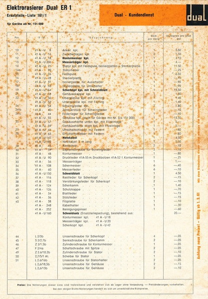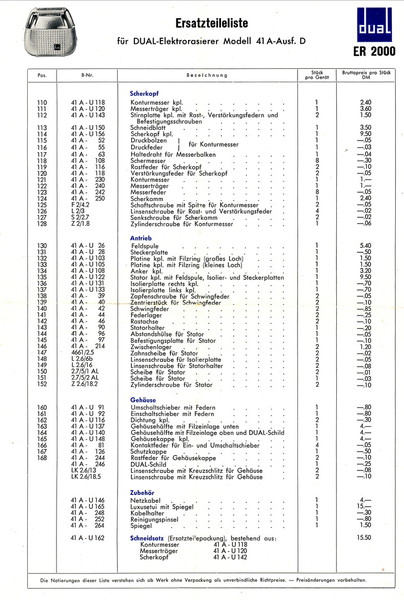 Ersatzteilisten mit Explosionszeichnungen der Modelle