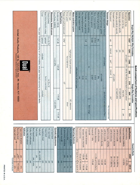 Ein Prospekt aus den USA von United Audio Products in New York. United Audio Products war der exklusive US Distributor für Dual