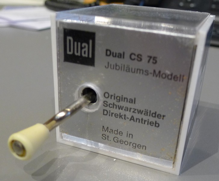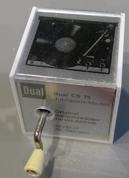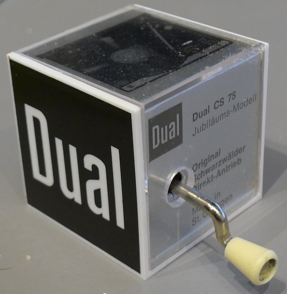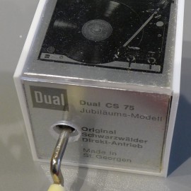 Diese Spieluhr wurde zum 75 jährigen Jubiläum von Dual als WErbegeschenk herausgebracht. Sie trägt den Namen CS 75 und spielt natürlich "Happy Birthday"