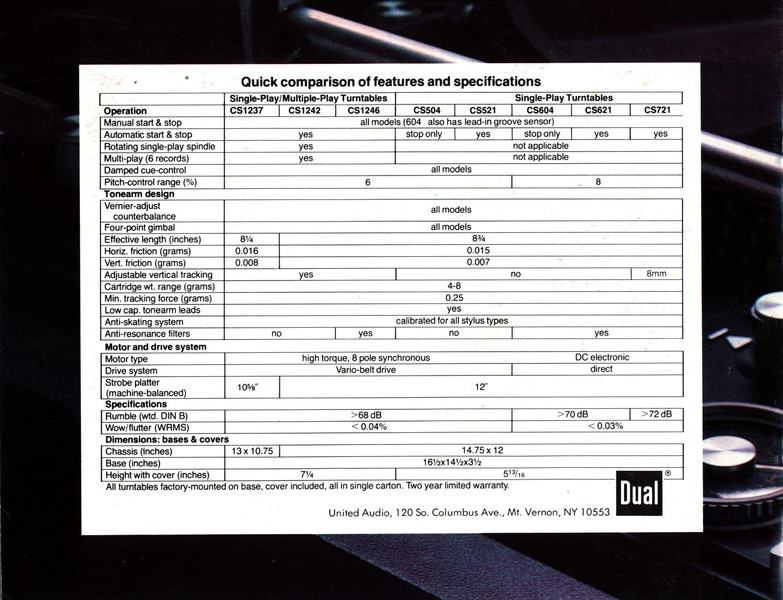 Ein schöner Katalog aus den USA (United Audio New York), der die Generation der Geräte ab dem CS721 zeigt.